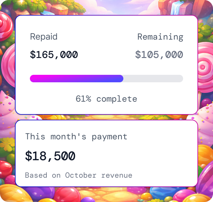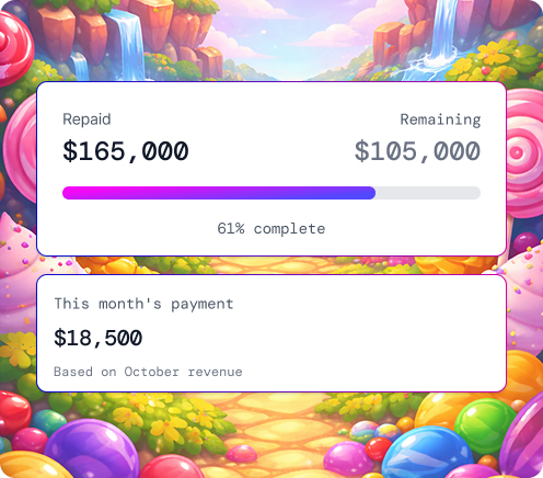If your game performance drops, repayment automatically decreases since it’s tied to revenue—you never have a fixed payment you can’t afford. Strong performance means faster repayment. There’s no penalty for early or slower repayment as long as revenue is flowing.